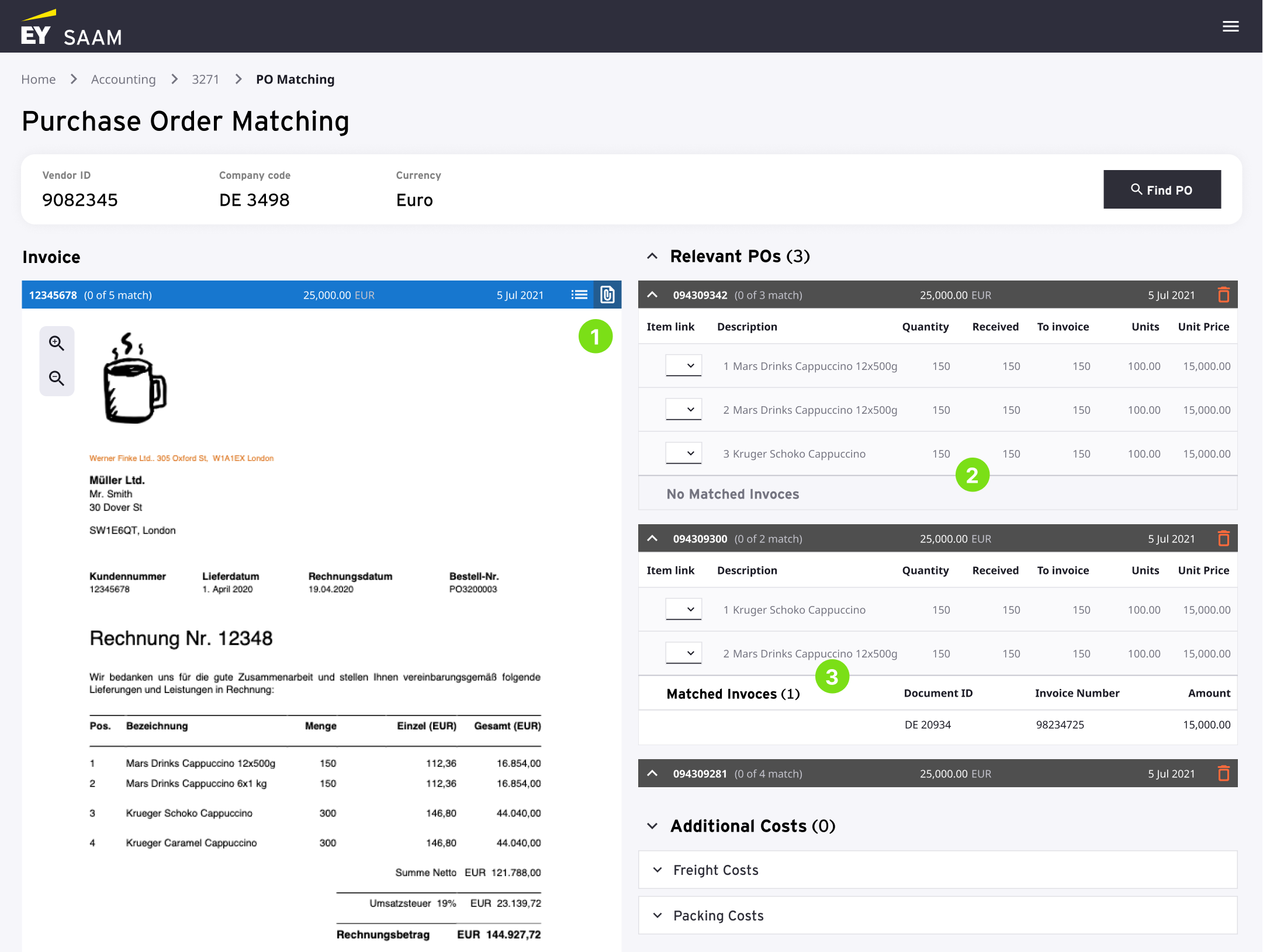Process of reconciliation of multiple purchase orders against invoices is very complicated and prone to errors. We need a tool that will match every line item to ensure that what we received matches with what we've ordered.