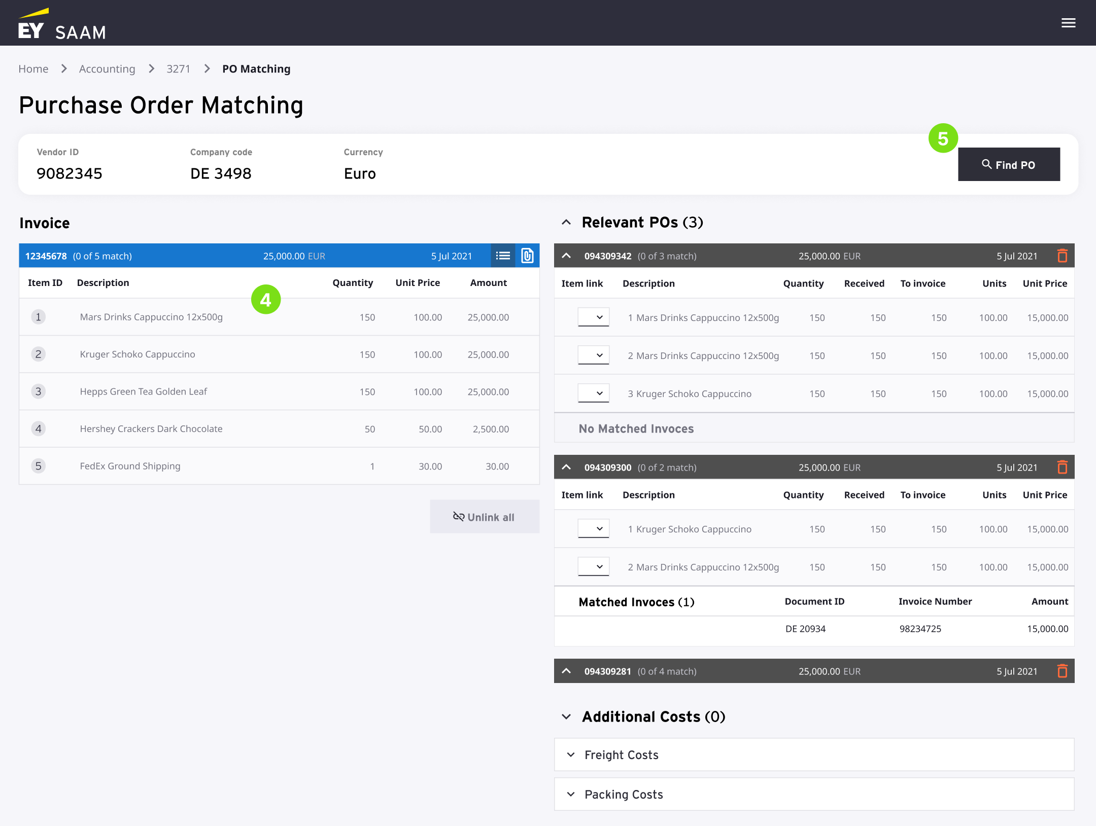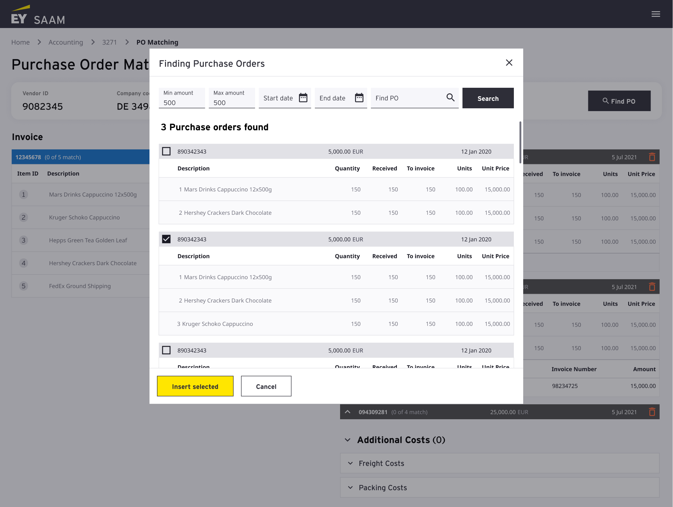 If for some reason system was unable to recognize relevant purchase orders, user would have an option to