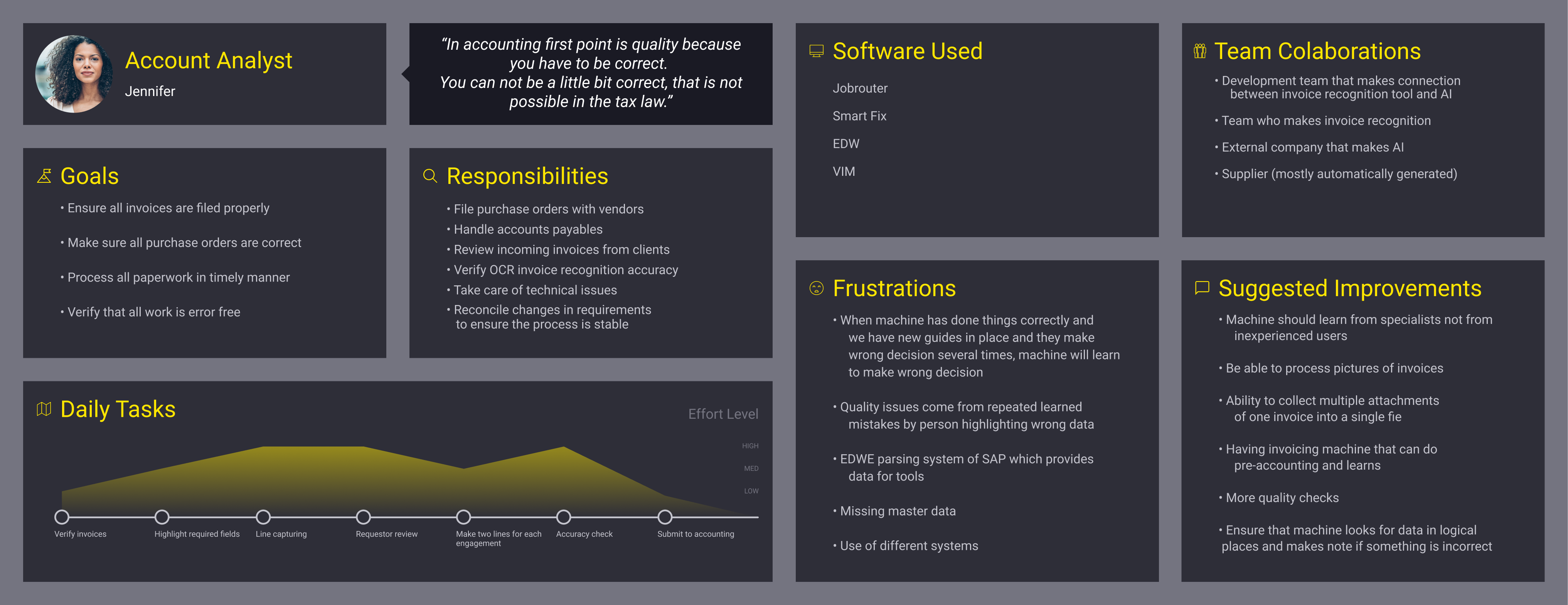 Team has worked on getting a better understanding of complex logistics that are involved in purchase reconciliation. This process was very time consuming as it involved setting up workshops and interviews with business owners and industry experts.