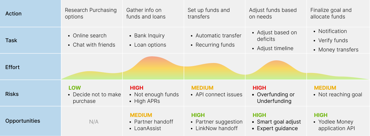 I've organized a workshop to look at typical path for user to save for a goal. It became quite apparent that there are many pitfalls in the process. We wanted to focus on problem areas to look for ways to help people on the right track.